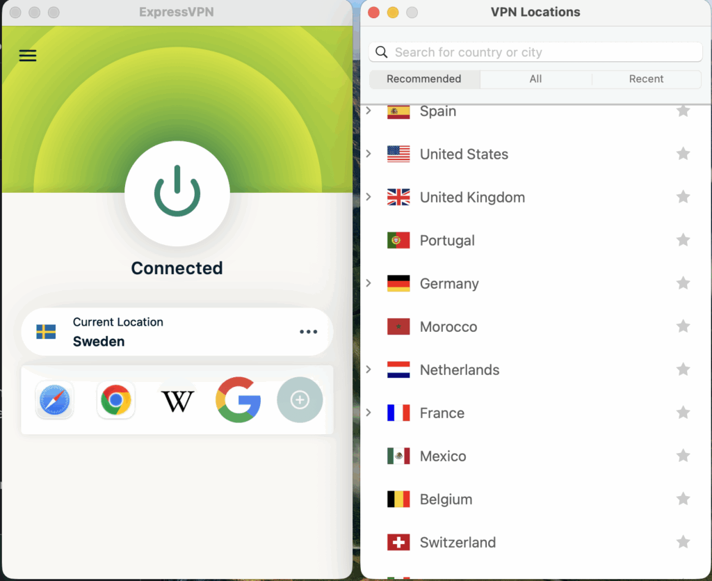 ExpressVPN är särskilt populär i Sverige, där användare söker en VPN som fungerar sömlöst med svenska och internationella streamingtjänster som Netflix, SVT Play, Viaplay och HBO Max. Med ExpressVPN Sverige får du tillgång till geoblockerat innehåll på bara några sekunder, samtidigt som du surfar säkert med skydd mot dataläckor och spårning.